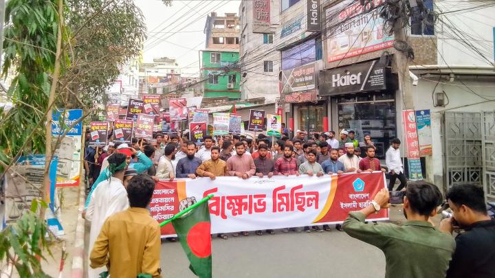 গণভোটের আলোকে জনরায় বাস্তবায়নে সরকারের গড়িমসির প্রতিবাদে বগুড়ায় বিক্ষোভ মিছিল করেছে বাংলাদেশ ইসলামী ছাত্রশিবির বগুড়া শহর শাখা।