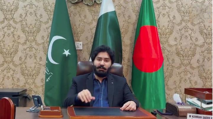 আজ ২৩ ডিসেম্বর মঙ্গলবার এক ভিডিও বার্তায় পাকিস্তান মুসলিম লিগের (পিএমএএল) যুব শাখার সভাপতি কামরান সইদ উসমানি বলেন, 'ভারত যদি বাংলাদেশের উপর আক্র.মণ করে, যদি কেউ বাংলাদেশের স্বাধীনতার দিকে কুনজর দেয়, তা হলে পাকিস্তানের জনগণ, পাক সেনা এবং আমাদের মি.সাইল বসে থাকবে না।' .