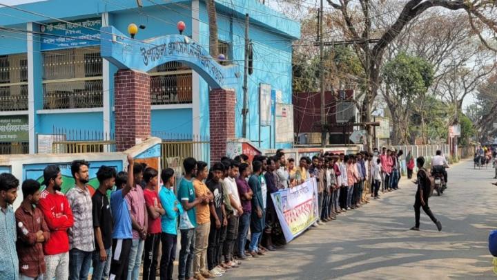 নন্দীগ্রাম (বগুড়া) প্রতিনিধি : বগুড়ার নন্দীগ্রামে মিলন হোসেন হত্যা মামলার আসামিদের দ্রুত গ্রেপ্তার ও দৃষ্টান্তমূলক শাস্তির দাবিতে উপজেলা ও পৌর ছাত্রদলের উদ্যোগে বিক্ষোভ মিছিল ও মানববন্ধন কর্মসূচি পালিত হয়েছে। রবিবার (২২ ফেব্রুয়ারি) দুপুরে অনুষ্ঠিত এ কর্মসূচিতে বিপুল সংখ্যক নেতাকর্মী ও সাধারণ শিক্ষার্থীরা অংশ নেন।.
