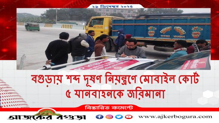 বগুড়ায় শব্দ দূষণ নিয়ন্ত্রণে মোবাইল কোর্ট, ৫ যানবাহনকে জরিমানা